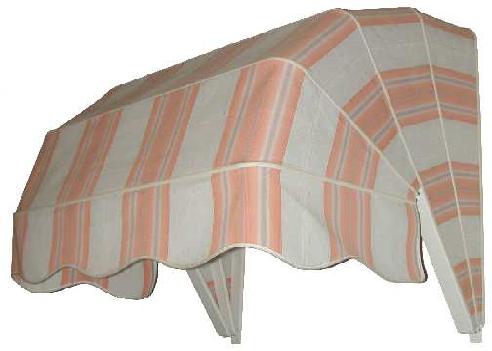 La cappottina modello Becco d'Oca è ideale per porte d'ingresso o vetrine. La struttura portante è interamente in alluminio verniciato; può essere confezionata con tessuti acrilici o PVC. Gli accessori utilizzati sono in alluminio con viteria in acciaio Inox. La movimentazione avviene mediante carrucole in acciaio Inox; può essere manuale, ad argano o motorizzata.